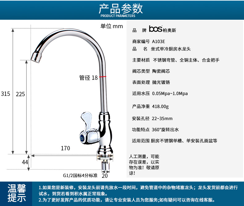單冷立式廚房龍頭