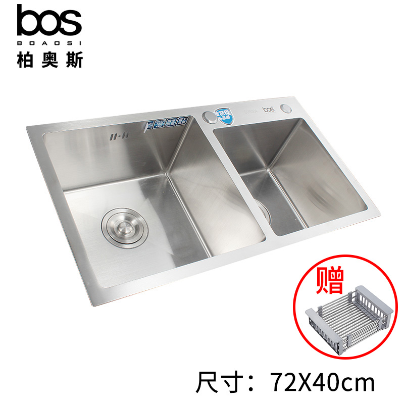 手工雙盆帶濾水籃(SUS304)